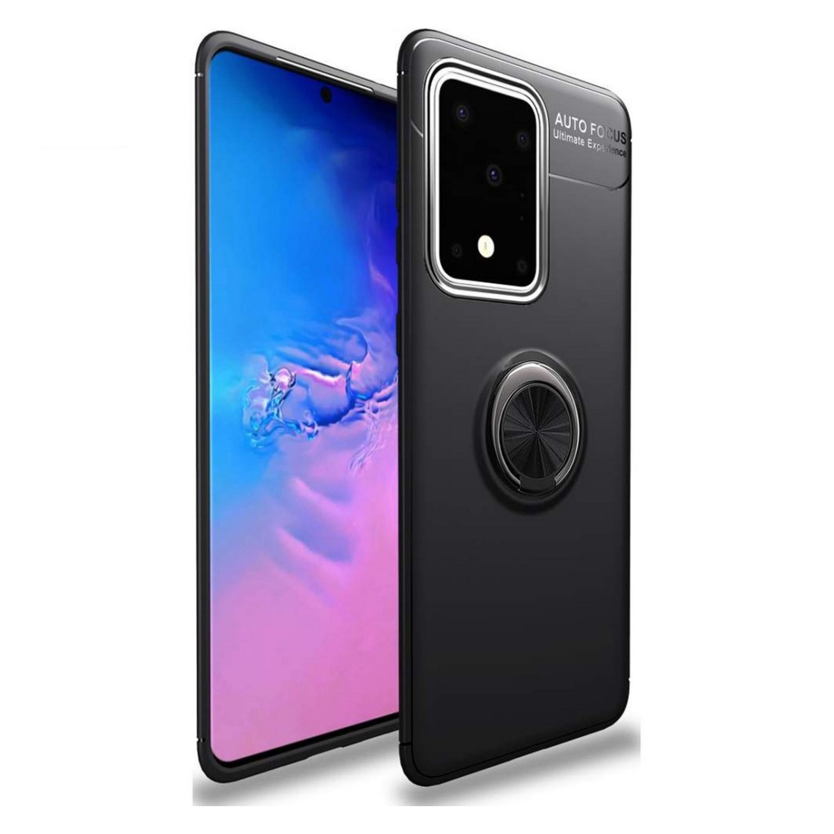 Funda Protectora de gel TPU con anillo integrado y magnética para soporte de coche color Negra para Samsung Galaxy S20 Ultra.