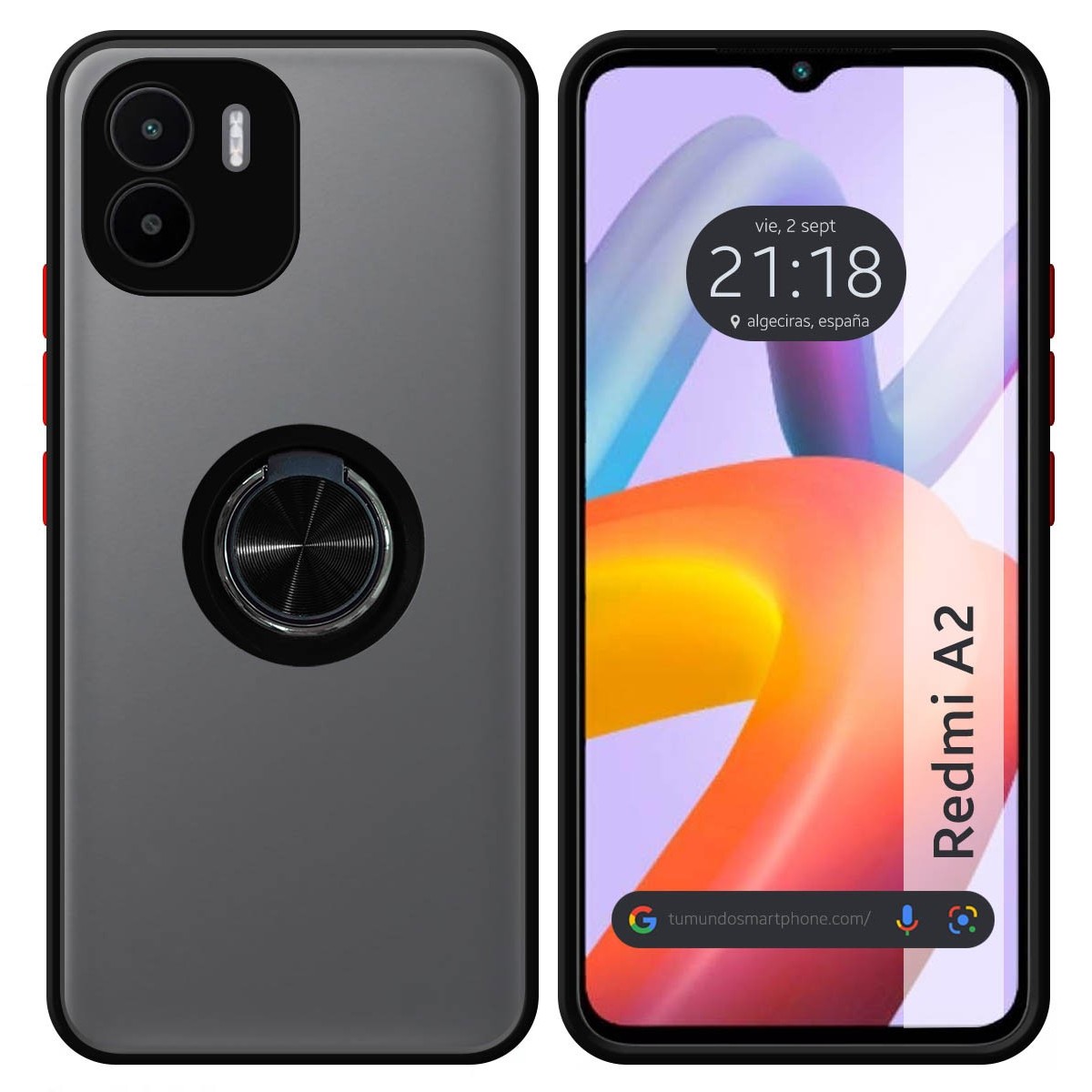 Funda Mate con Borde Negra y Anillo Giratorio 360 compatible con Xiaomi Redmi A2