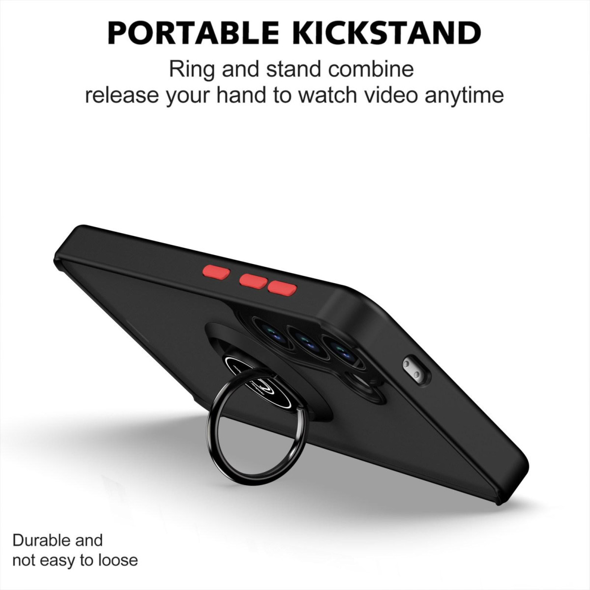 Esta innovadora funda posee un anillo de metal integrado en la funda, este se puede girar 360º y puede ajustarse a cualquier ángulo que necesite. También puede usarlo como soporte de teléfono móvil para ver películas y videos.