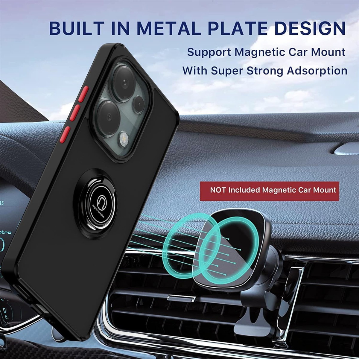 Funda Mate con Borde Negro y Anillo Giratorio 360 para Xiaomi Redmi Note 13 Pro 4G
