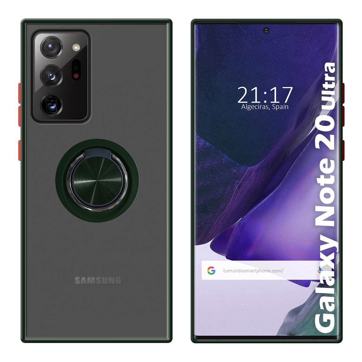 Funda Mate con Borde Verde y Anillo Giratorio 360 para Samsung Galaxy Note 20 Ultra