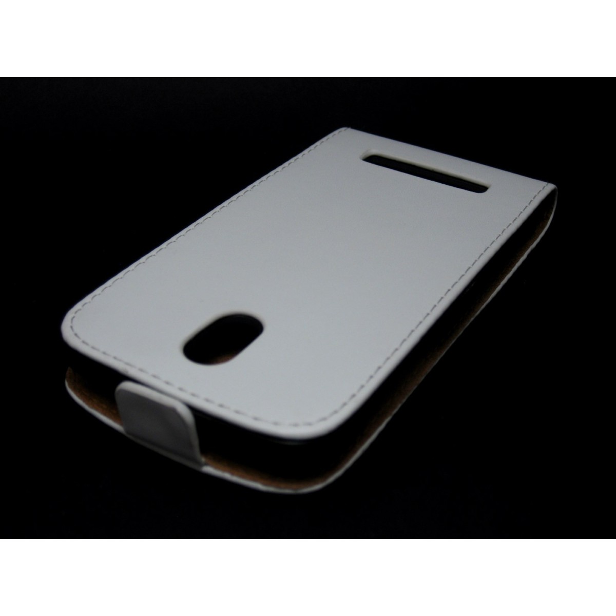 Funda protectora fabricada en piel sintetica de Alta Calidad en color blanca, con costuras en color blanca, muy elegante para su HTC Desire 500. Esta funda es del tipo ultra slim es decir ultra delgada, posee un cierre imantado, por lo que es mucho más comodo abrir y cerrar la solapa.