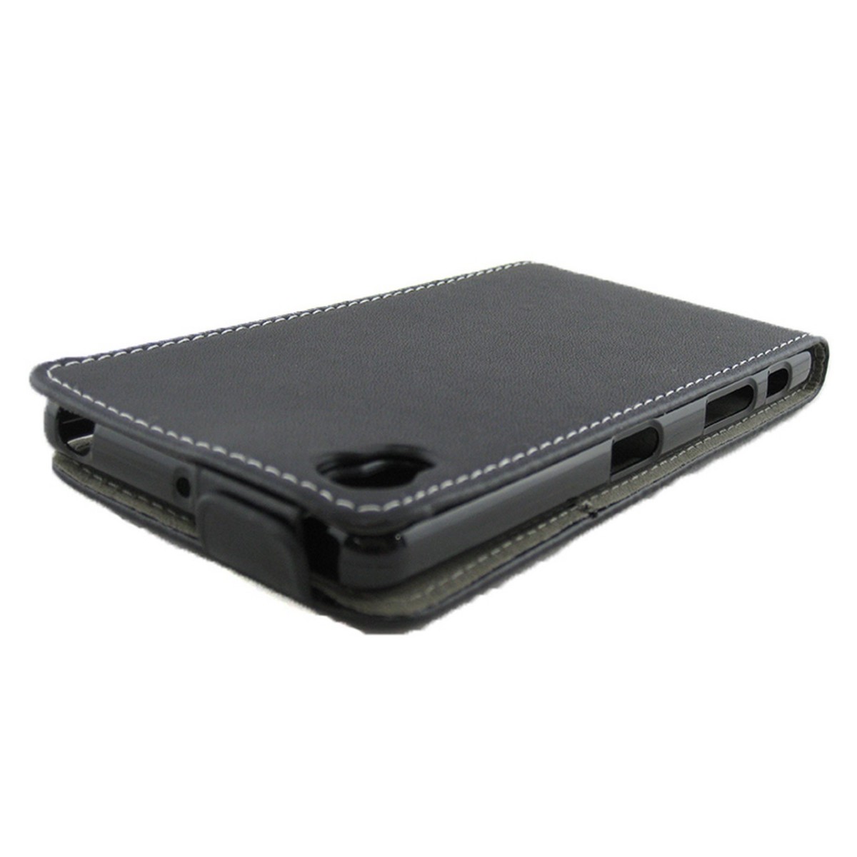 Funda protectora fabricada en piel sintetica de Alta Calidad en color negro, con costuras en color gris, muy elegante para su SONY XPERIA X. Esta funda es del tipo ultra slim es decir ultra delgada, posee un cierre imantado, por lo que es mucho más comodo abrir y cerrar la solapa.