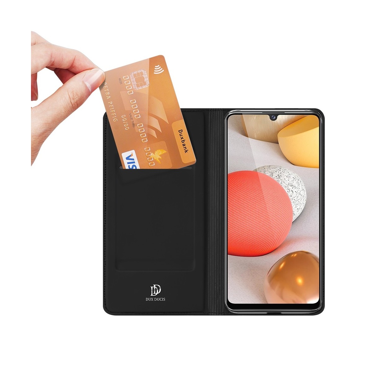 Funda protectora fabricada en piel sintética en color Negra, marca Dux Ducis, Modelo Skin Pro, muy elegante para Samsung Galaxy A42 5G