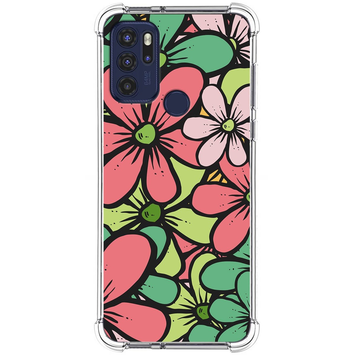 Funda Carcasa de Silicona Transparente Antigolpes personalizada dibujo Flores 02 para Motorola Moto G60s.
