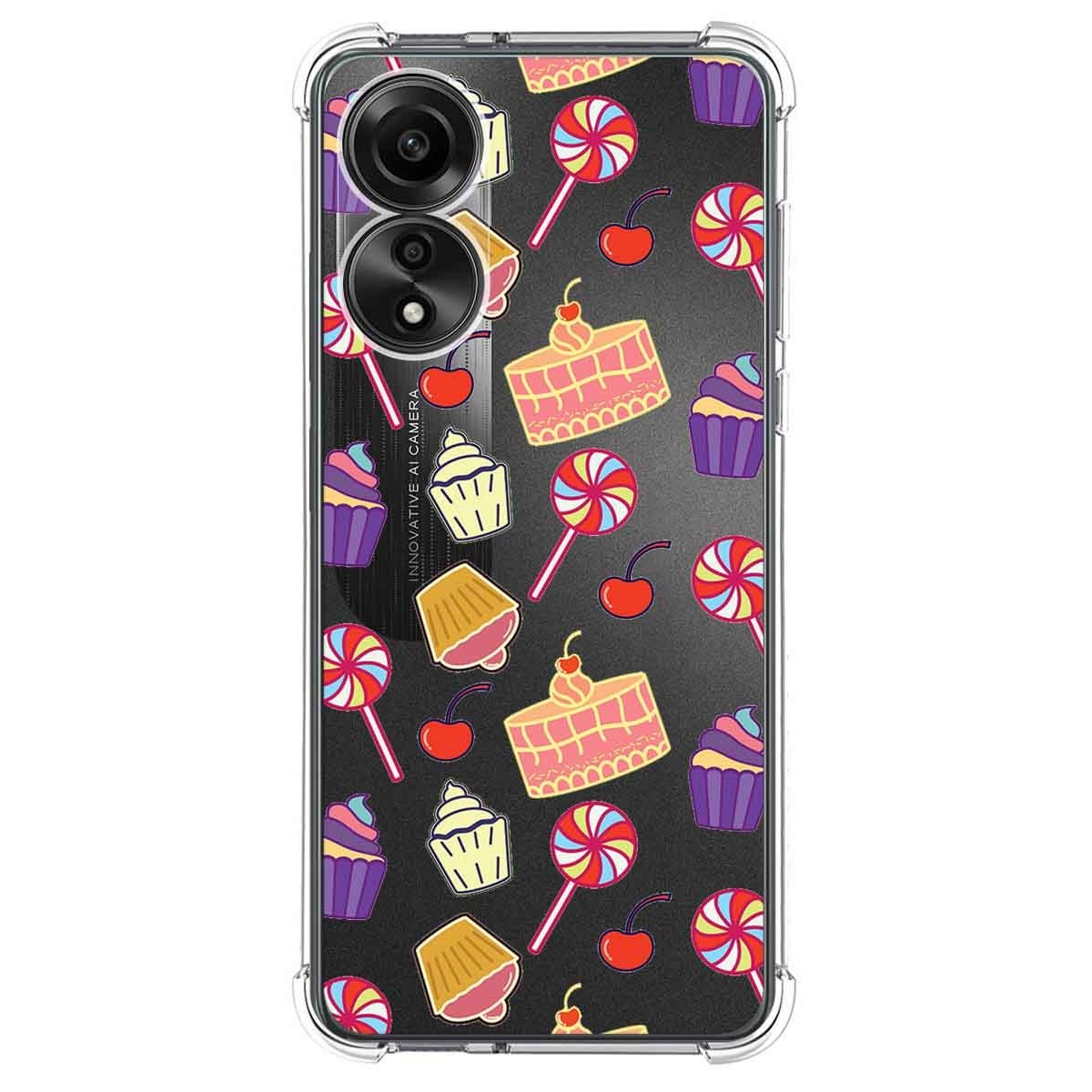Funda Carcasa de Silicona Transparente Antigolpes personalizada dibujo Dulces 01 para Oppo A78 4G.