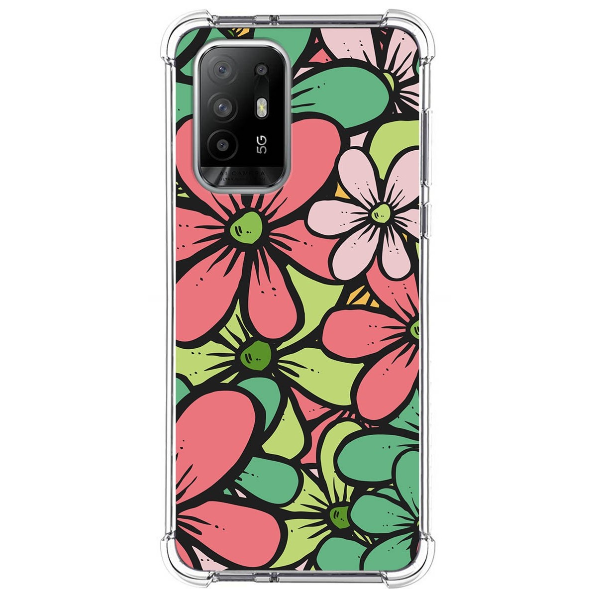 Funda Carcasa de Silicona Transparente Antigolpes personalizada dibujo Flores 02 para Oppo A94 5G.