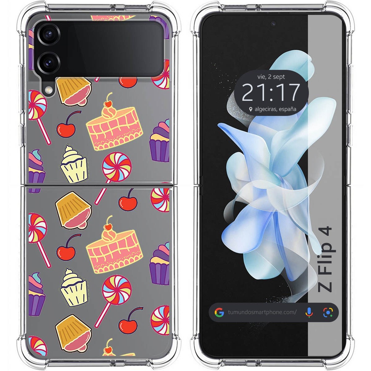 Funda Carcasa de Silicona Transparente Antigolpes personalizada dibujo Dulces 01 para Samsung Galaxy Z Flip4 5G.
