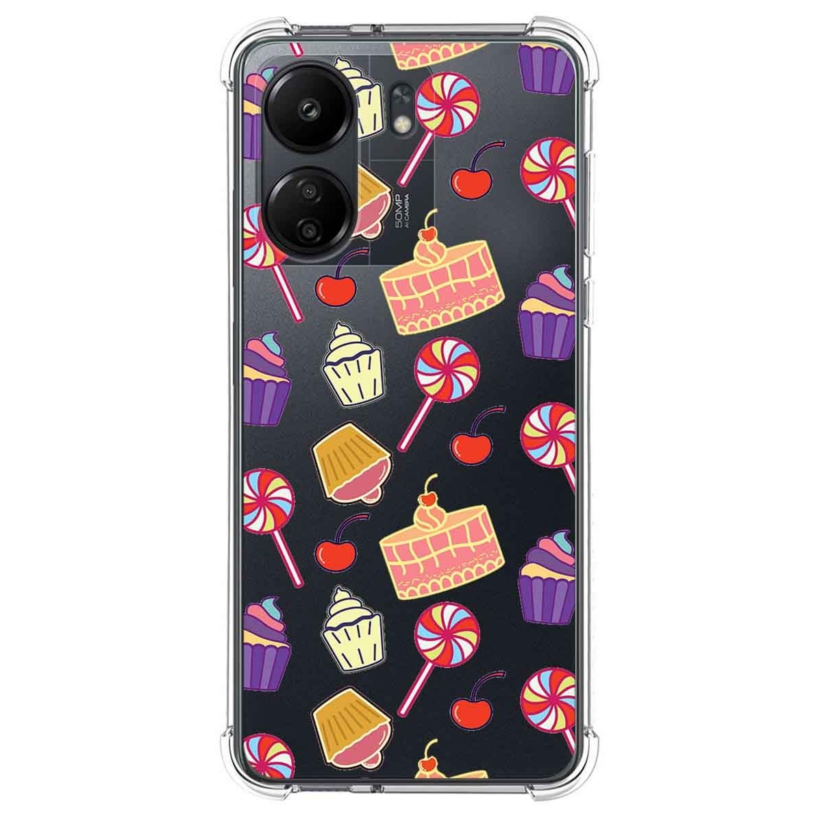 Funda Carcasa de Silicona Transparente Antigolpes personalizada dibujo Dulces 01 para Xiaomi Redmi 13C.