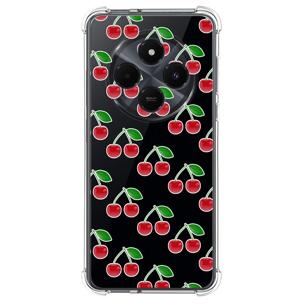 Funda Carcasa de Silicona Transparente Antigolpes personalizada dibujo Cerezas para Xiaomi Redmi 14C.