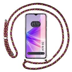 Funda Colgante Transparente para Oppo A78 5G con Cordon Rosa Fucsia