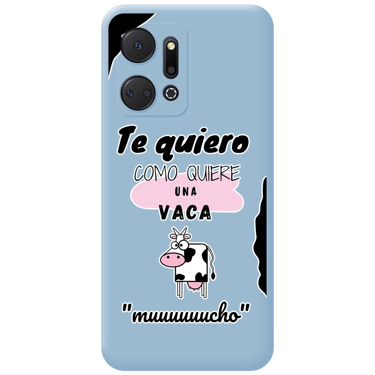 Funda Carcasa de Silicona Líquida color Azul personalizada dibujo Vaca para Huawei Honor X7a. Esta funda posee un buen equilibrio y está formada por dos capas una interior que le proporciona rigidez y otra exterior que le da un acabado suave y sedoso. La parte interior de esta funda está formada por una tela aterciopelada que evita los arañazos de su móvil.