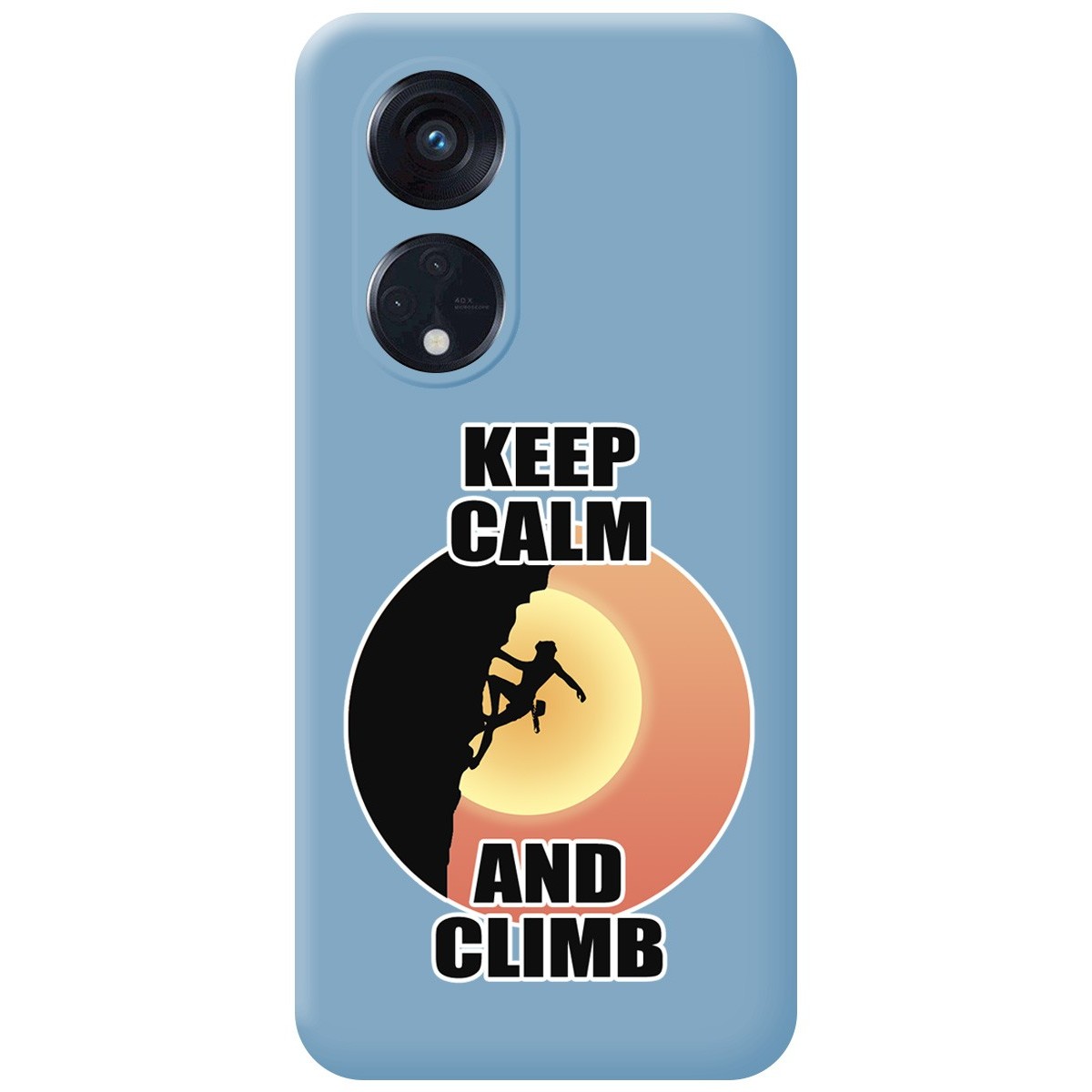 Funda Carcasa de Silicona Líquida color Azul personalizada dibujo Mujer Escalada para Oppo Reno 8T 4G. Esta funda posee un buen equilibrio y está formada por dos capas una interior que le proporciona rigidez y otra exterior que le da un acabado suave y sedoso. La parte interior de esta funda está formada por una tela aterciopelada que evita los arañazos de su móvil.