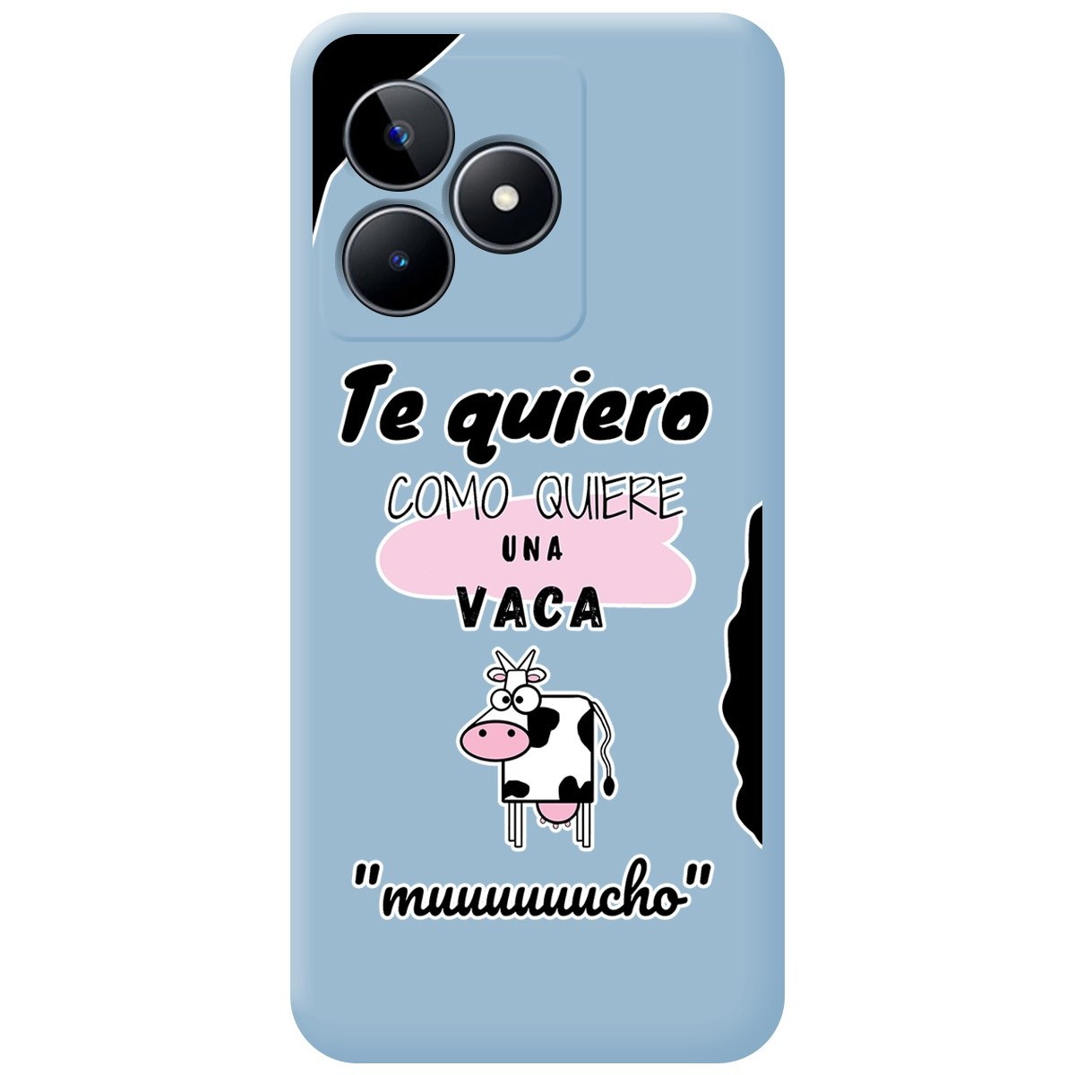 Funda Carcasa de Silicona Líquida color Azul personalizada dibujo Vaca para Realme C53. Esta funda posee un buen equilibrio y está formada por dos capas una interior que le proporciona rigidez y otra exterior que le da un acabado suave y sedoso. La parte interior de esta funda está formada por una tela aterciopelada que evita los arañazos de su móvil.