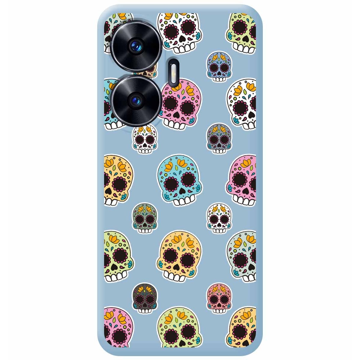 Funda Silicona Líquida Azul para Realme C55 diseño Catrina Dibujos