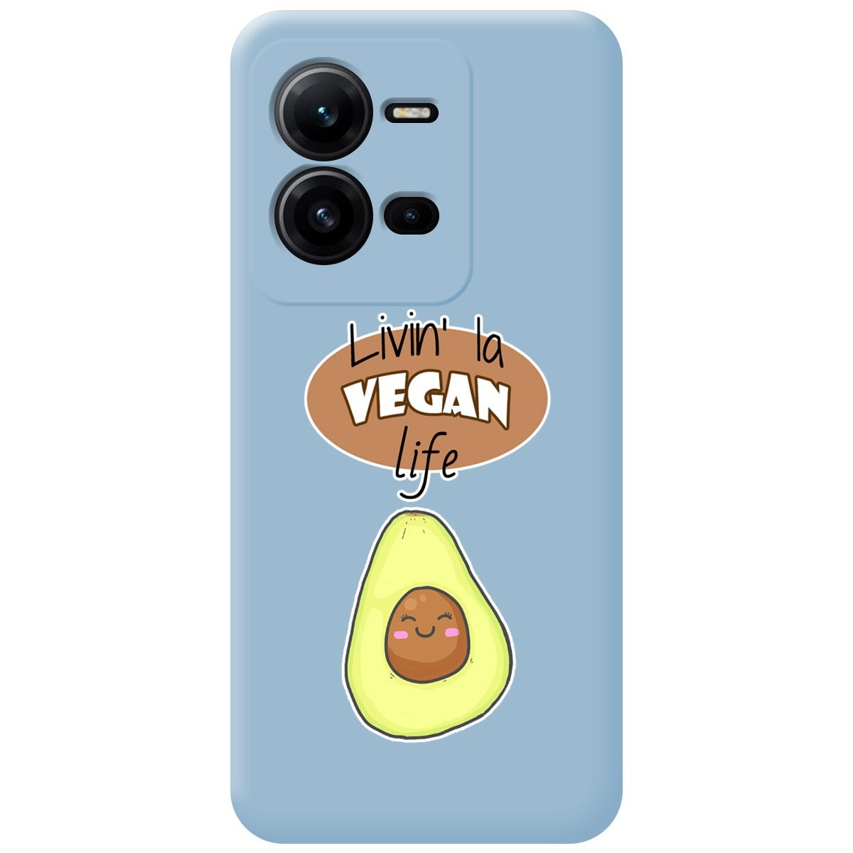 Funda Carcasa de Silicona Líquida color Azul personalizada dibujo Vegan Life para Vivo X80 Lite 5G. Esta funda posee un buen equilibrio y está formada por dos capas una interior que le proporciona rigidez y otra exterior que le da un acabado suave y sedoso. La parte interior de esta funda está formada por una tela aterciopelada que evita los arañazos de su móvil.