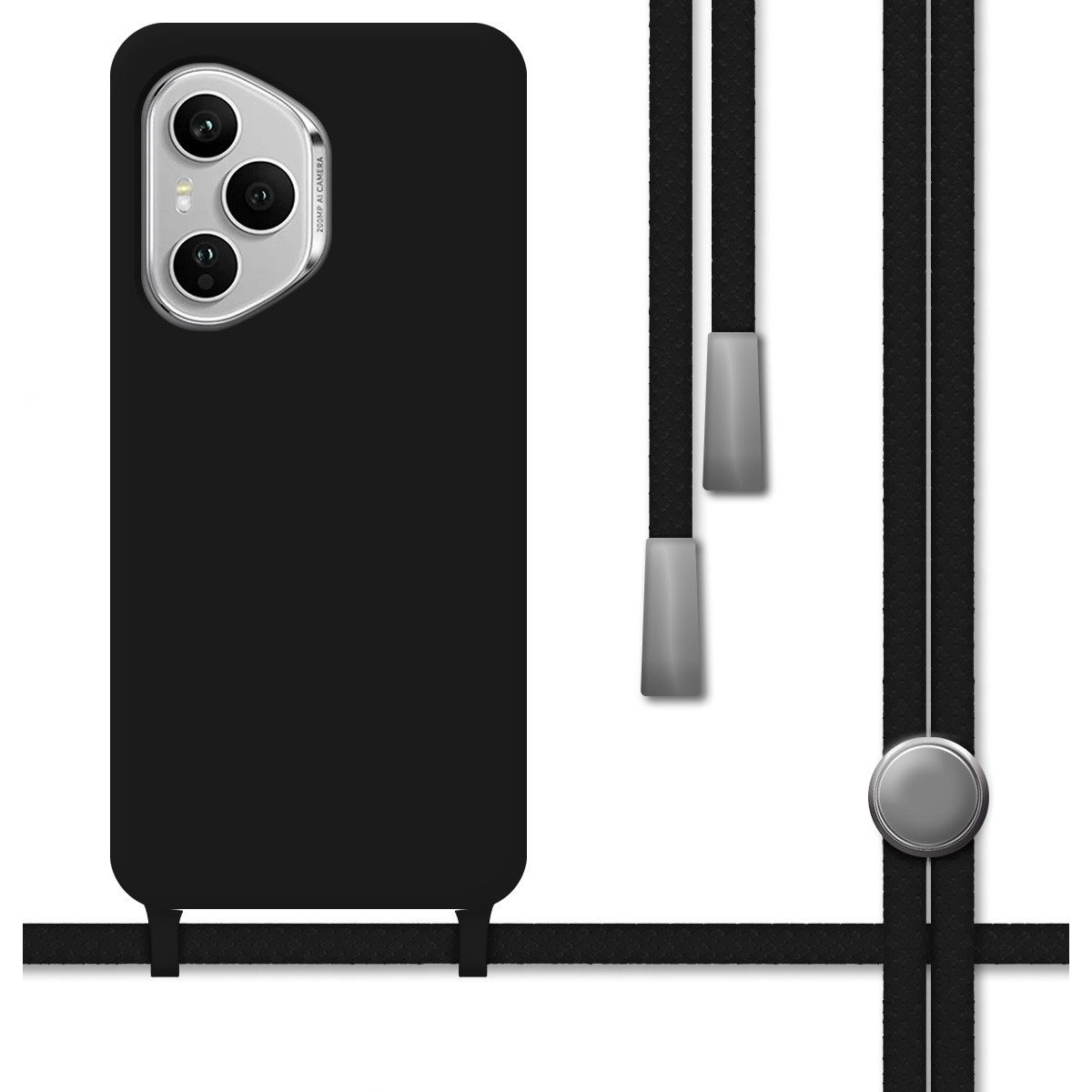 Funda Silicona Líquida con Cordón para Huawei Honor 400 Pro 5G color Negra