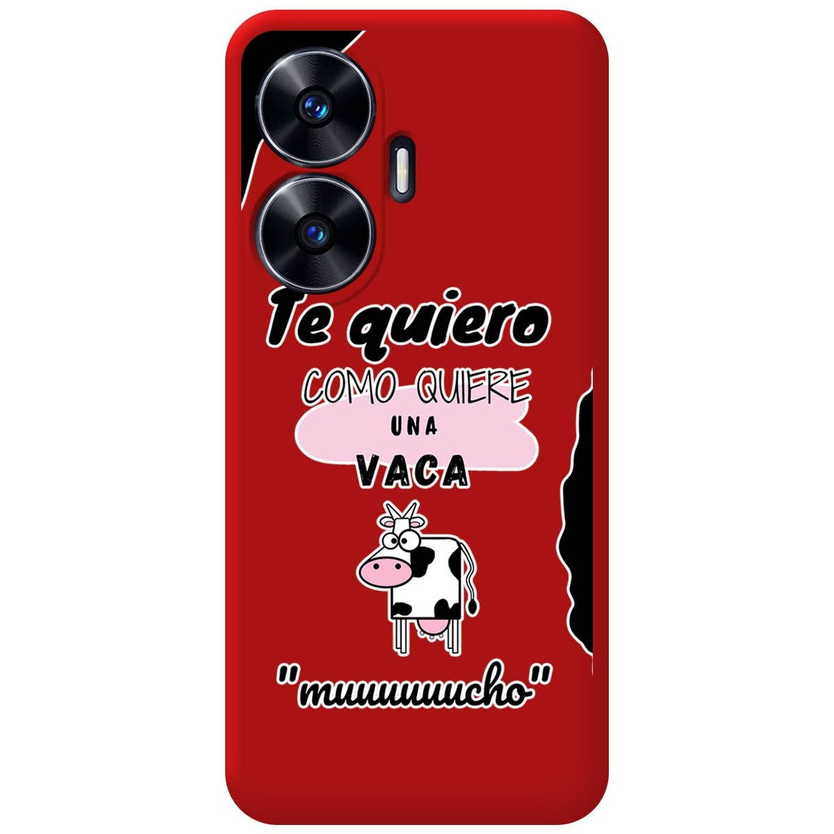 Funda Carcasa de Silicona Líquida color Roja personalizada dibujo Vaca para Realme C55. Esta funda posee un buen equilibrio y está formada por dos capas una interior que le proporciona rigidez y otra exterior que le da un acabado suave y sedoso. La parte interior de esta funda está formada por una tela aterciopelada que evita los arañazos de su móvil.