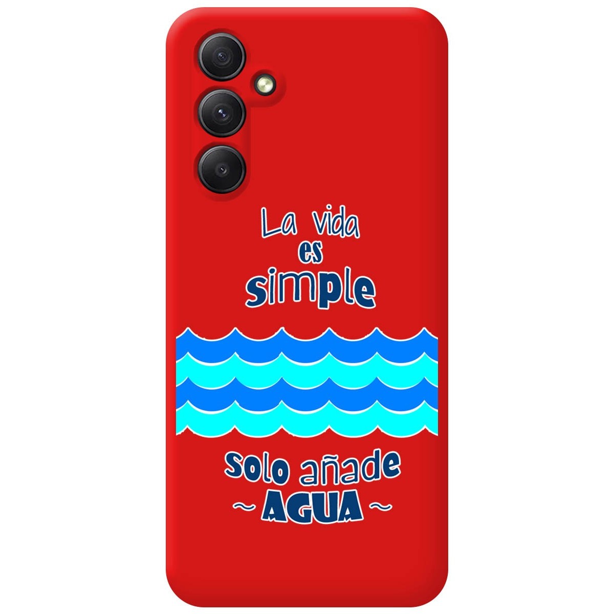 Funda Carcasa de Silicona Líquida color Roja personalizada dibujo Agua para Samsung Galaxy A54 5G. Esta funda posee un buen equilibrio y está formada por dos capas una interior que le proporciona rigidez y otra exterior que le da un acabado suave y sedoso. La parte interior de esta funda está formada por una tela aterciopelada que evita los arañazos de su móvil.