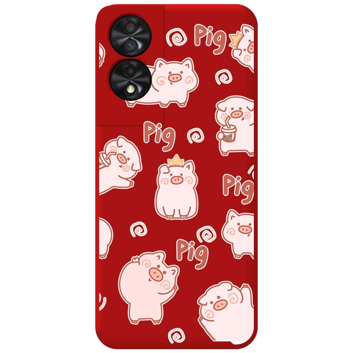 Funda Silicona Líquida Roja para TCL 50 SE diseño Cerdos Dibujos