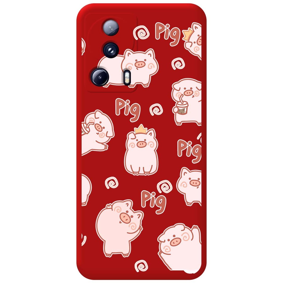 Funda Silicona Líquida Roja compatible con Xiaomi 13 Lite 5G diseño Cerdos Dibujos