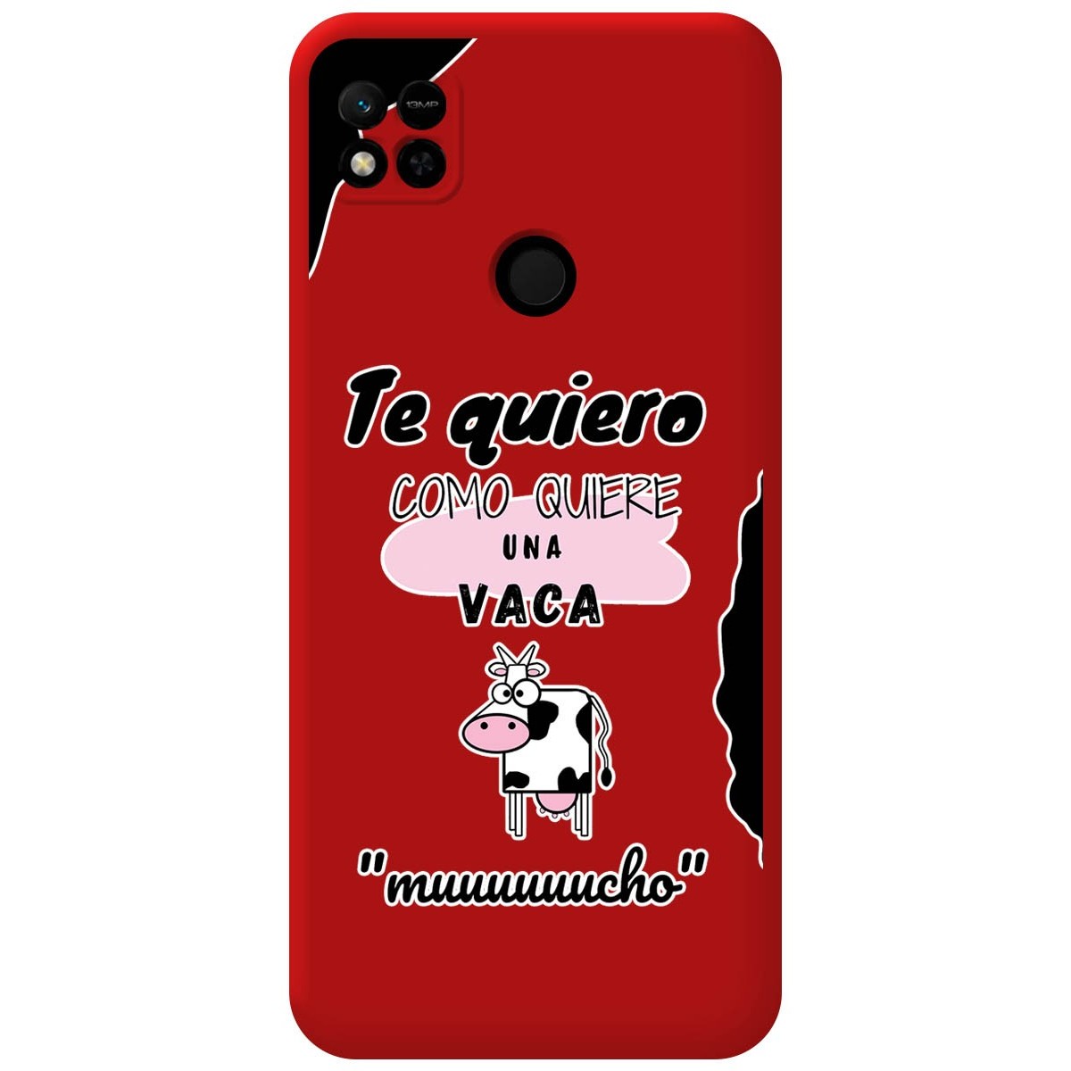 Funda Carcasa de Silicona Líquida color Roja personalizada dibujo Vaca para Xiaomi Redmi 10A. Esta funda posee un buen equilibrio y está formada por dos capas una interior que le proporciona rigidez y otra exterior que le da un acabado suave y sedoso. La parte interior de esta funda está formada por una tela aterciopelada que evita los arañazos de su móvil.