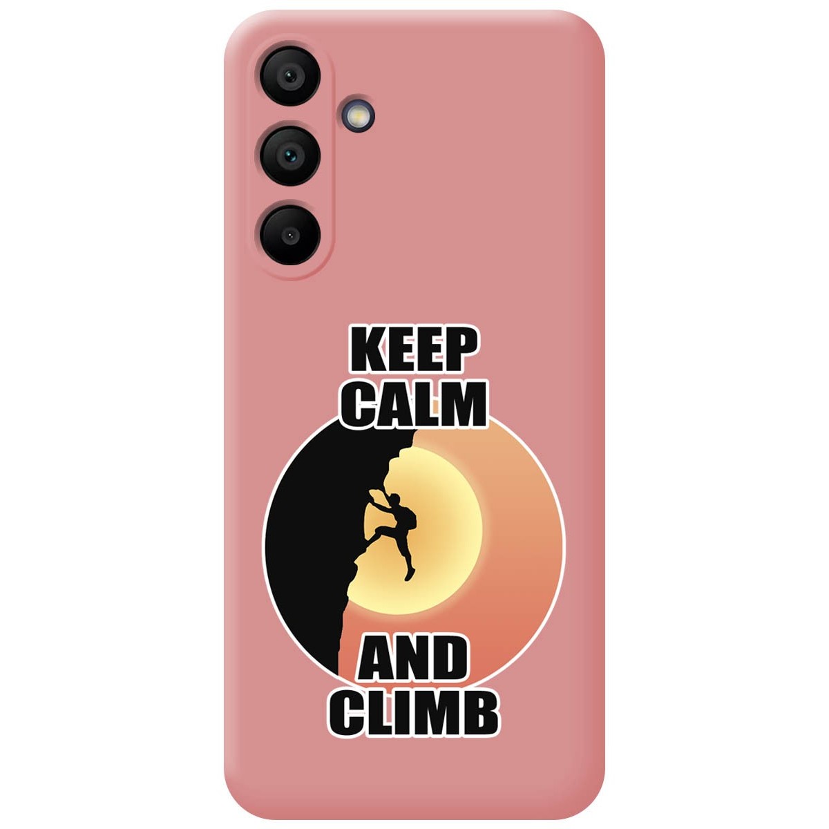 Funda Carcasa de Silicona Líquida color Rosa personalizada dibujo Hombre Escalada para Samsung Galaxy A15 4G / 5G. Esta funda posee un buen equilibrio y está formada por dos capas una interior que le proporciona rigidez y otra exterior que le da un acabado suave y sedoso. La parte interior de esta funda está formada por una tela aterciopelada que evita los arañazos de su móvil.