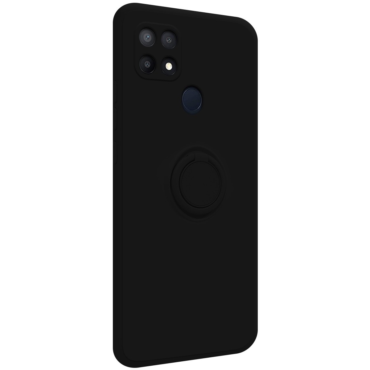 Funda Silicona Líquida Ultra Suave con Anillo para Oppo A15 color Negro