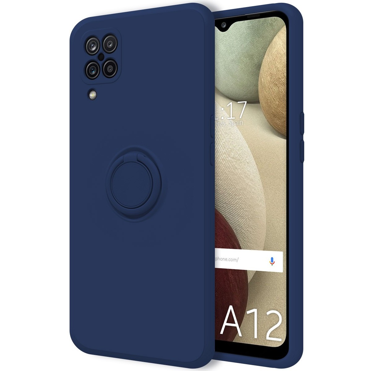 Funda Protectora fabricada en silicona líquida de alta calidad con anillo integrado y magnético para soporte de coche, en color Azul para Samsung Galaxy A12 / M12. Esta funda posee un buen equilibrio y está formada por dos capas una interior que le proporciona rigidez y otra exterior que le da un acabado suave y sedoso.
