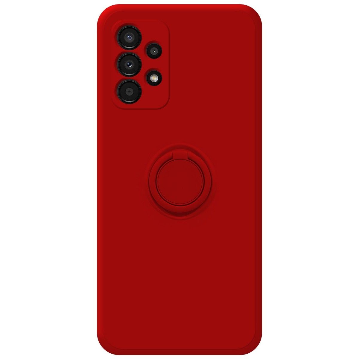 Funda Protectora fabricada en silicona líquida con anillo integrado y magnético para soporte de coche, en color Roja para Samsung Galaxy A13 4G. Esta funda posee un buen equilibrio y está formada por dos capas una interior que le proporciona rigidez y otra exterior que le da un acabado suave y sedoso.