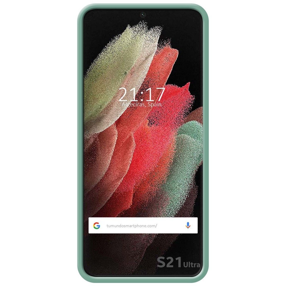 Funda Protectora fabricada en silicona líquida de alta calidad con anillo integrado y magnético para soporte de coche, en color Verde para Samsung Galaxy S21 Ultra 5G. Esta funda posee un buen equilibrio y está formada por dos capas una interior que le proporciona rigidez y otra exterior que le da un acabado suave y sedoso.