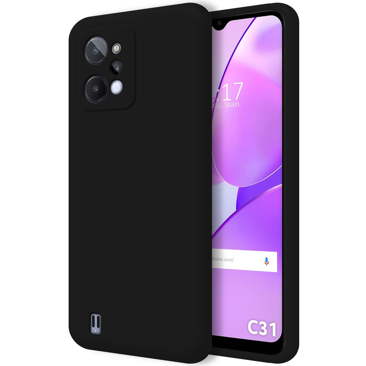 Funda Protectora fabricada en silicona líquida en color Negra para Realme C31. Esta funda posee un buen equilibrio y está formada por dos capas una interior que le proporciona rigidez y otra exterior que le da un acabado suave y sedoso. La parte interior de esta funda está formada por una tela aterciopelada que evita los arrañazos de su móvil.