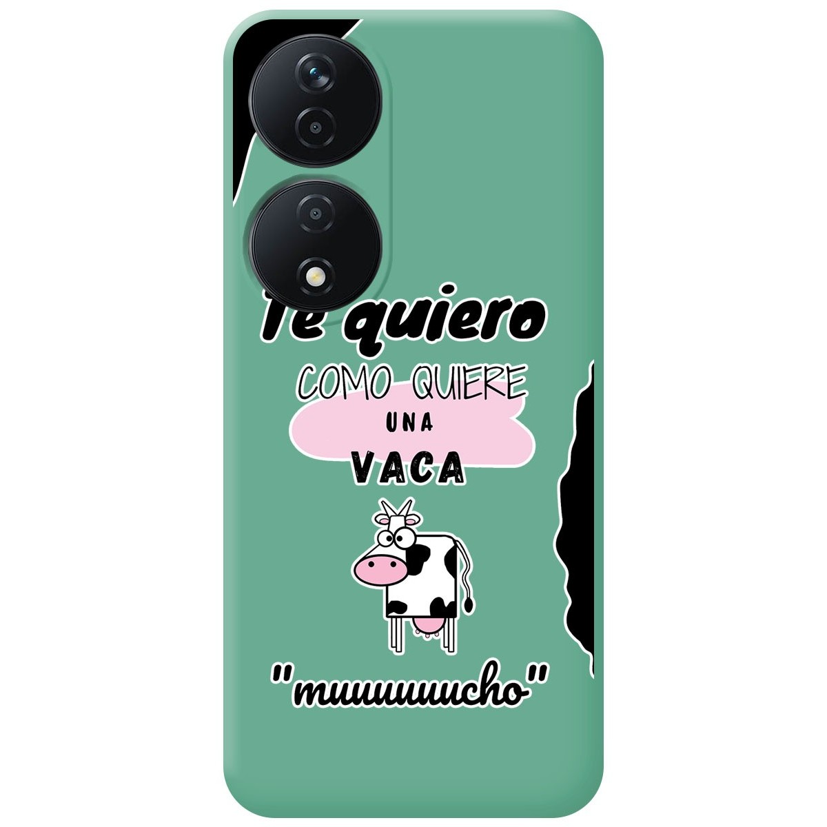 Funda Carcasa de Silicona Líquida color Verde personalizada dibujo Vaca para Huawei Honor X7b. Esta funda posee un buen equilibrio y está formada por dos capas una interior que le proporciona rigidez y otra exterior que le da un acabado suave y sedoso. La parte interior de esta funda está formada por una tela aterciopelada que evita los arañazos de su móvil.