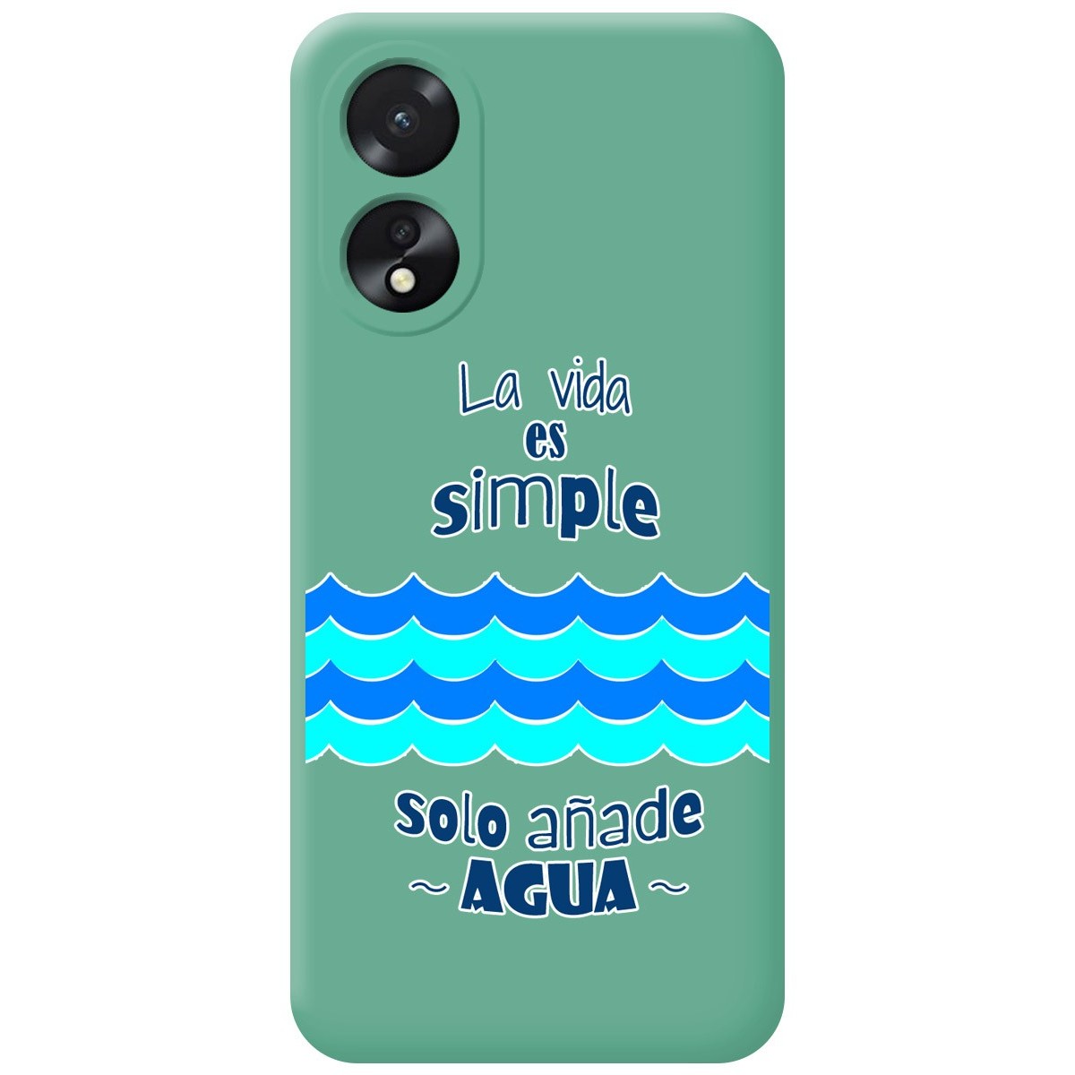 Funda Carcasa de Silicona Líquida color Verde personalizada dibujo Agua para Oppo A18. Esta funda posee un buen equilibrio y está formada por dos capas una interior que le proporciona rigidez y otra exterior que le da un acabado suave y sedoso. La parte interior de esta funda está formada por una tela aterciopelada que evita los arañazos de su móvil.