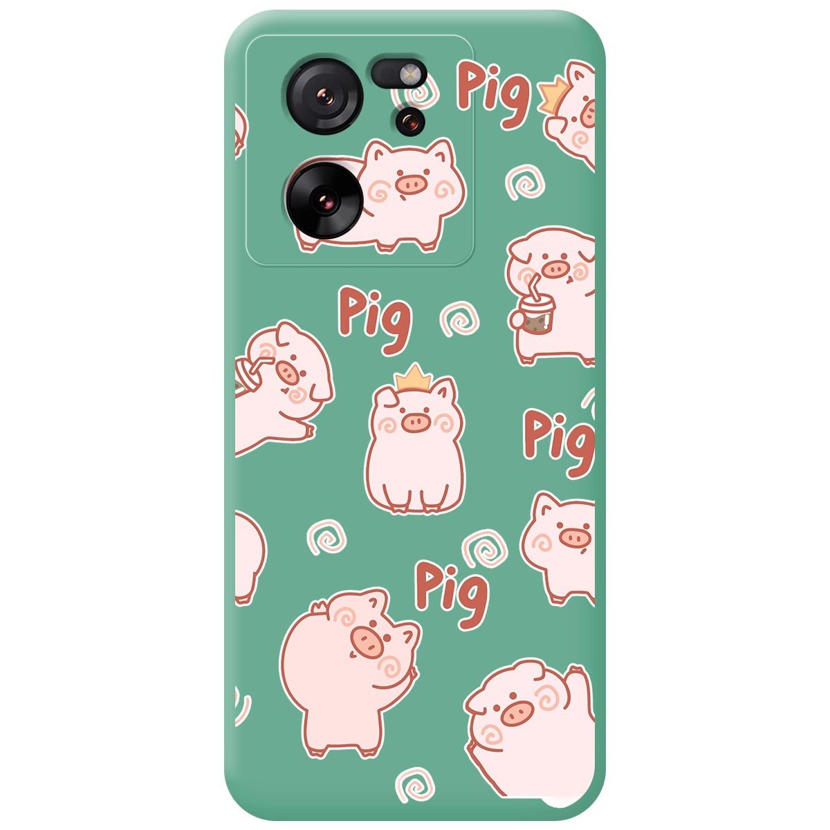 Funda Silicona Líquida Verde para Xiaomi 13T / 13T Pro 5G diseño Cerdos Dibujos