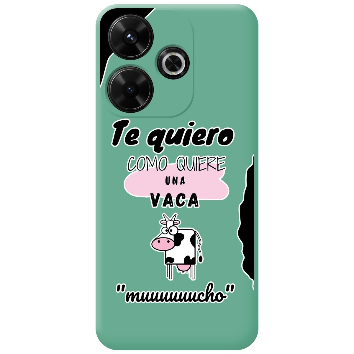 Funda Carcasa de Silicona Líquida color Verde personalizada dibujo Vaca para Xiaomi Redmi 13 4G. Esta funda posee un buen equilibrio y está formada por dos capas una interior que le proporciona rigidez y otra exterior que le da un acabado suave y sedoso. La parte interior de esta funda está formada por una tela aterciopelada que evita los arañazos de su móvil.