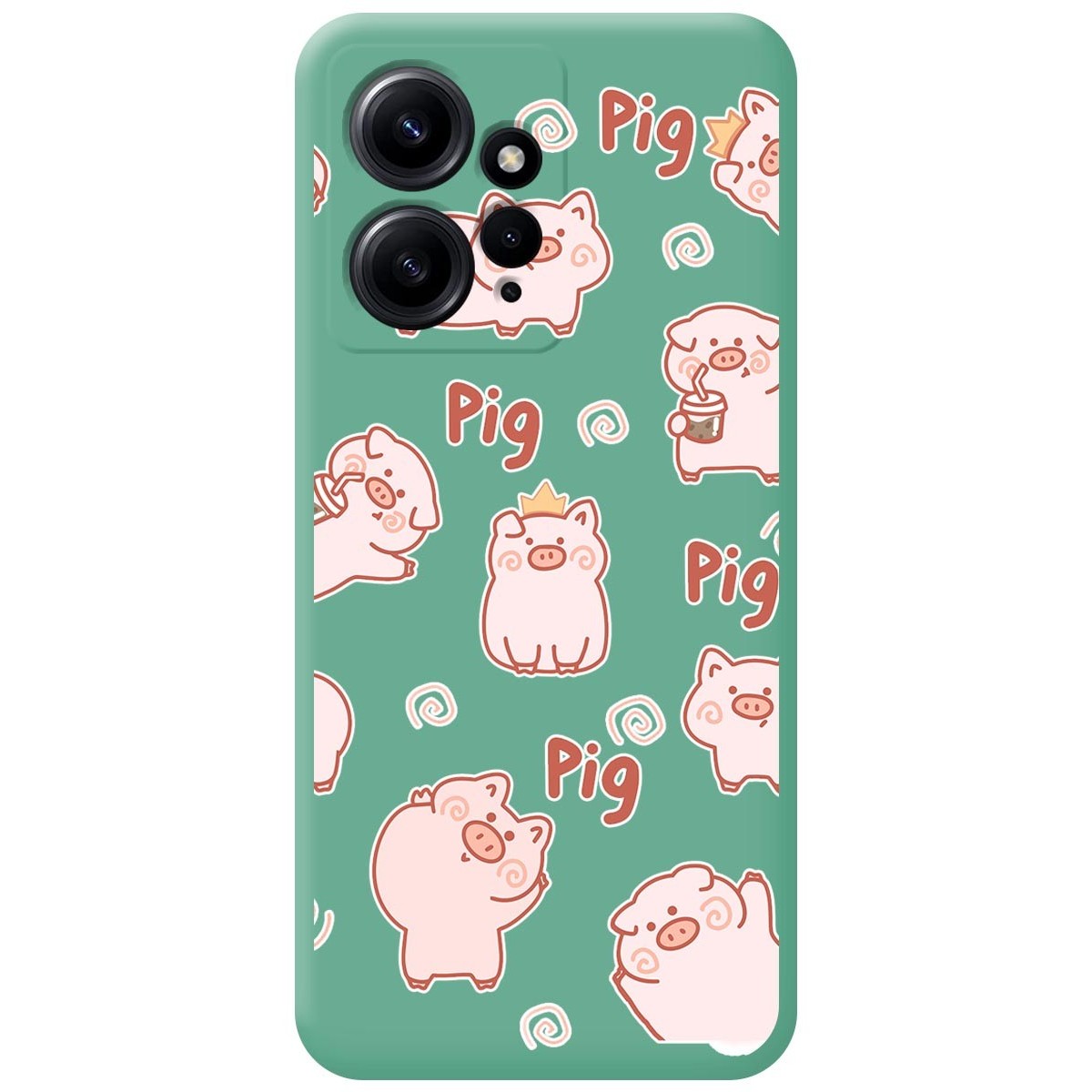 Funda Silicona Líquida Verde compatible con Xiaomi Redmi Note 12 4G diseño Cerdos Dibujos
