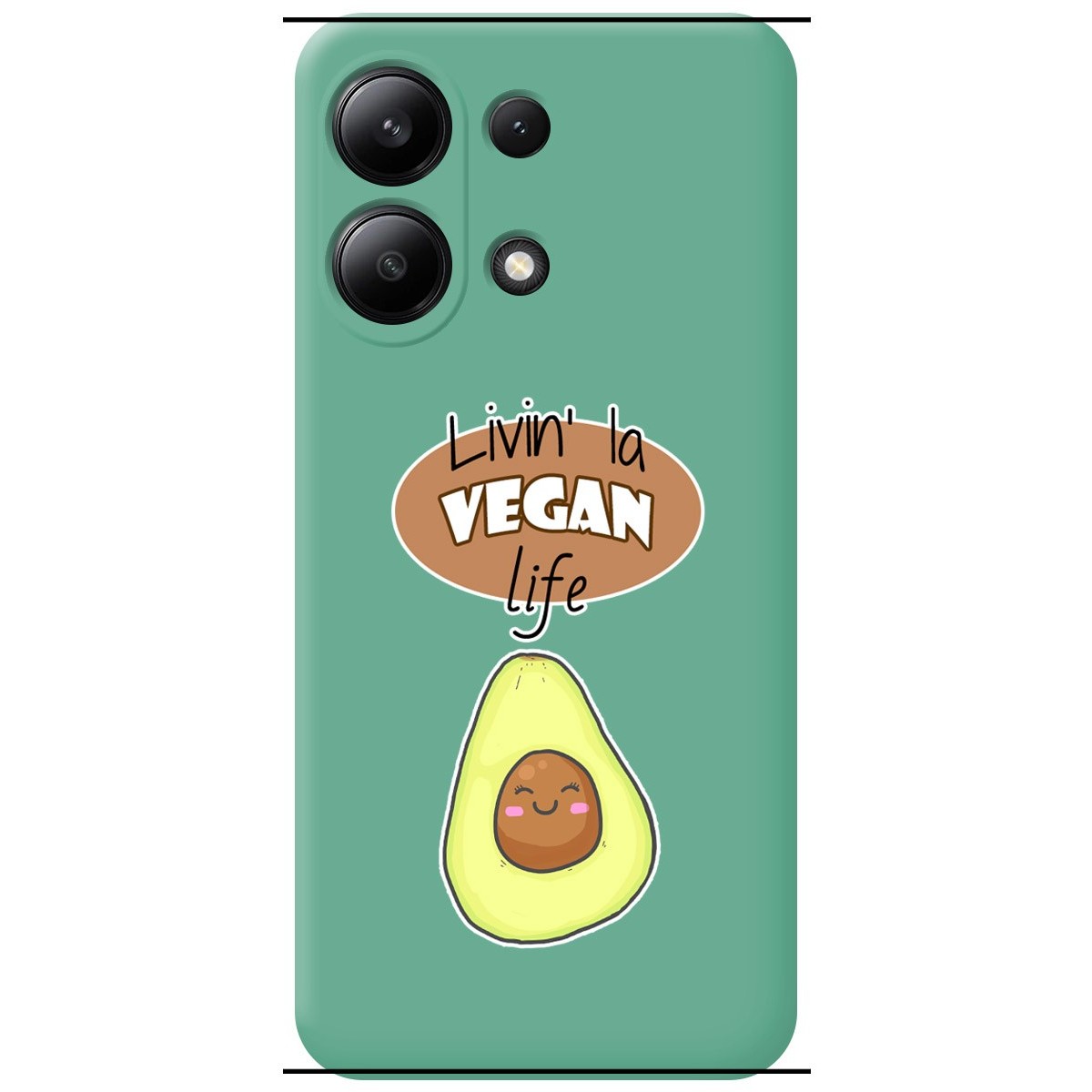 Funda Silicona Líquida Verde para Xiaomi Redmi Note 13 4G diseño Vegan Life Dibujos