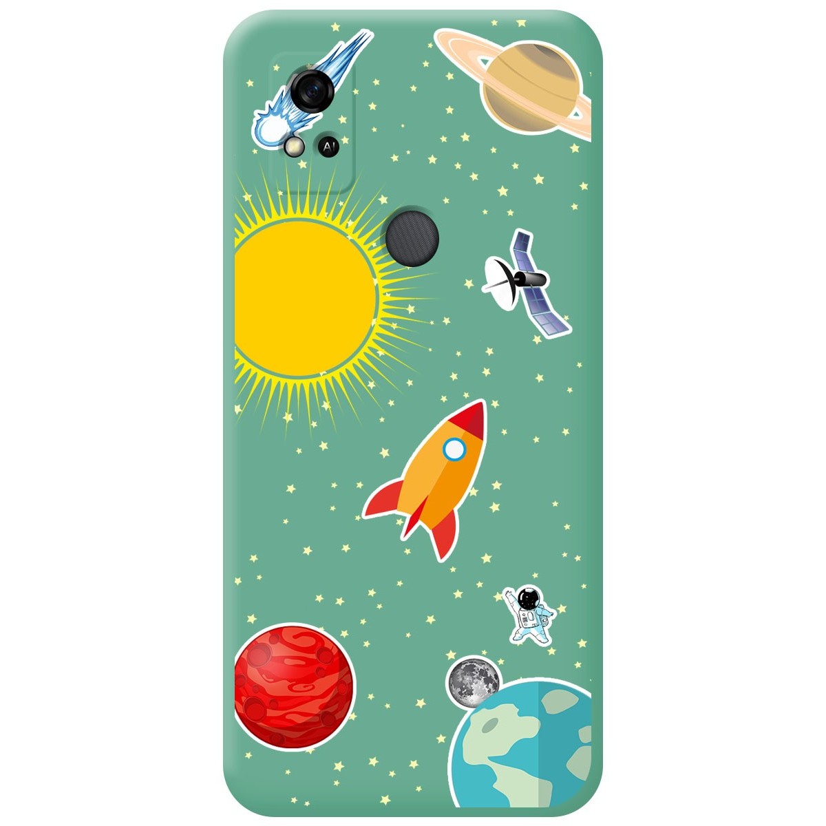 Funda Carcasa de Silicona Líquida color Verde personalizada dibujo Espacio para ZTE Blade A31. Esta funda posee un buen equilibrio y está formada por dos capas una interior que le proporciona rigidez y otra exterior que le da un acabado suave y sedoso. La parte interior de esta funda está formada por una tela aterciopelada que evita los arañazos de su móvil.