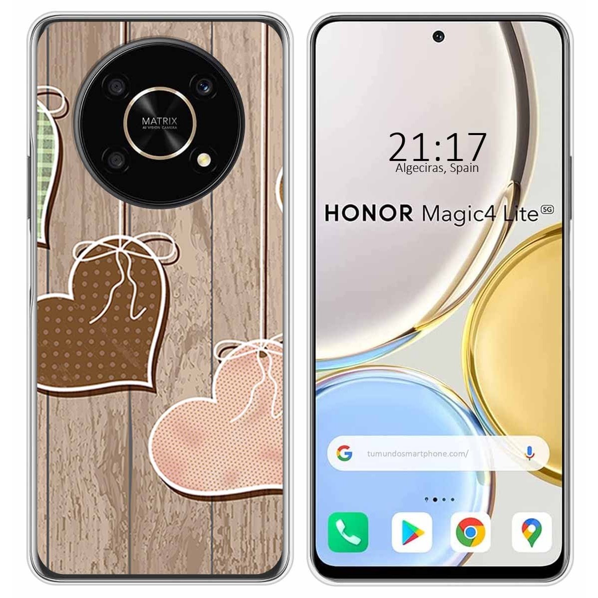 Funda Carcasa Protectora personalizada dibujo Corazones Madera de gel TPU para Huawei Honor Magic 4 Lite.