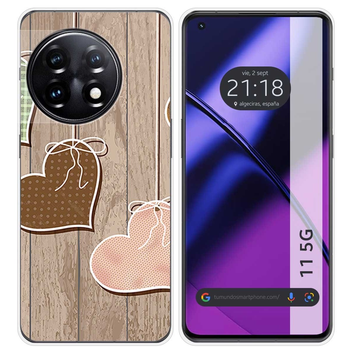 Funda Carcasa Protectora personalizada dibujo Corazones Madera de gel TPU para Oneplus 11 5G.