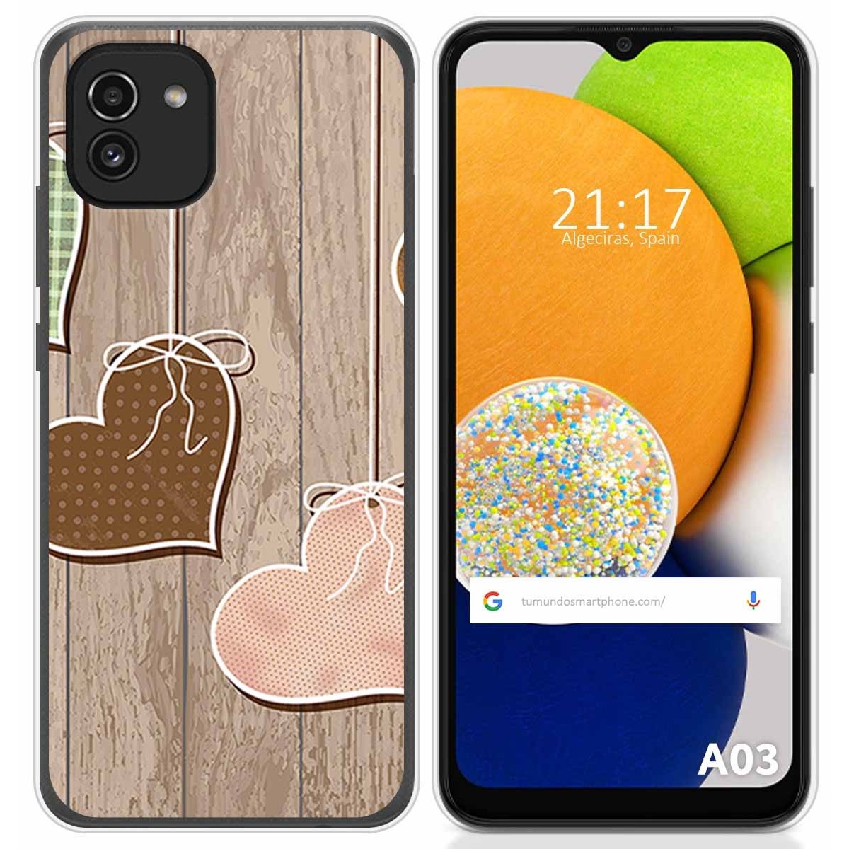 Funda Silicona para Samsung Galaxy A03 diseño Corazones Madera Dibujos
