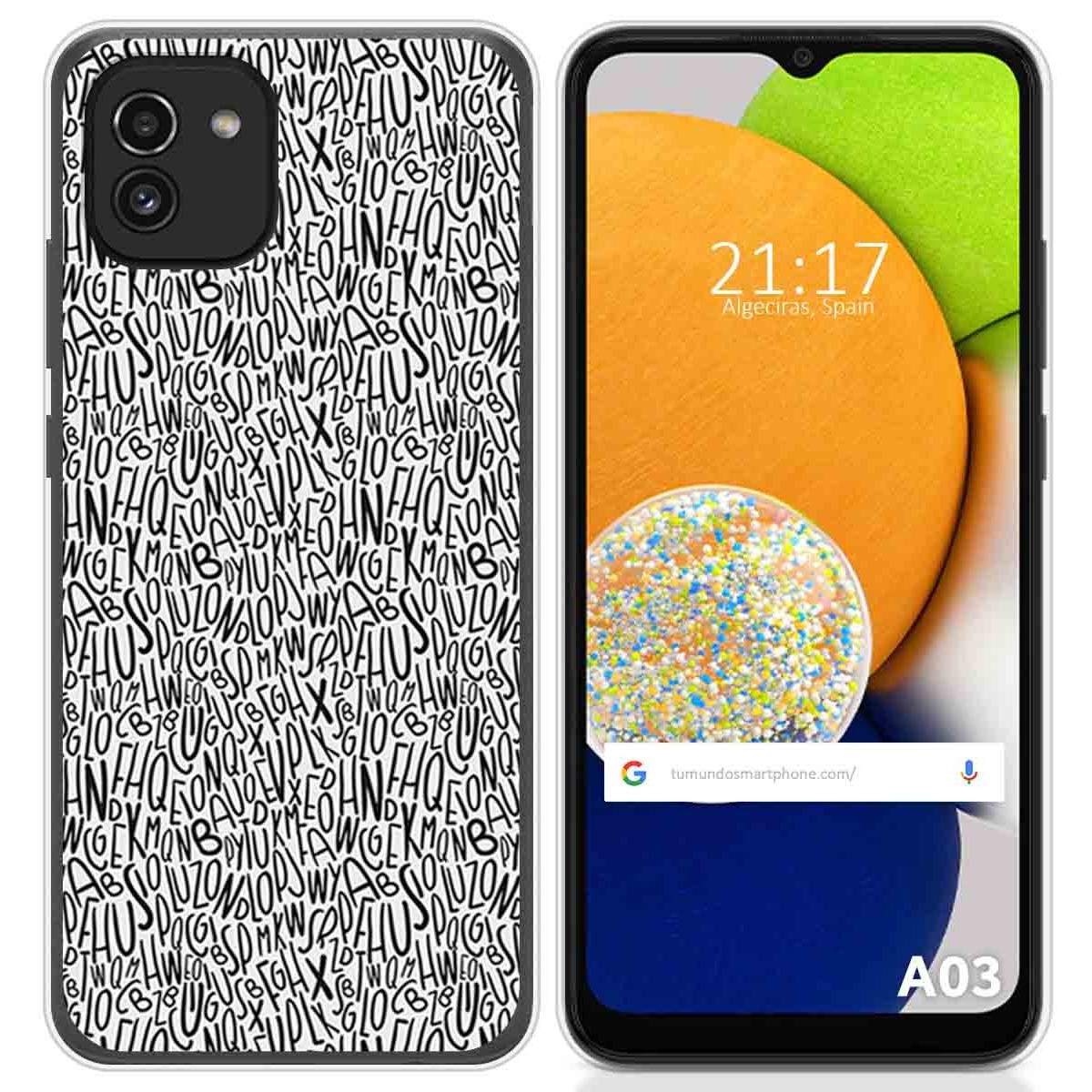 Funda Carcasa Protectora personalizada dibujo Letras de gel TPU para Samsung Galaxy A03.