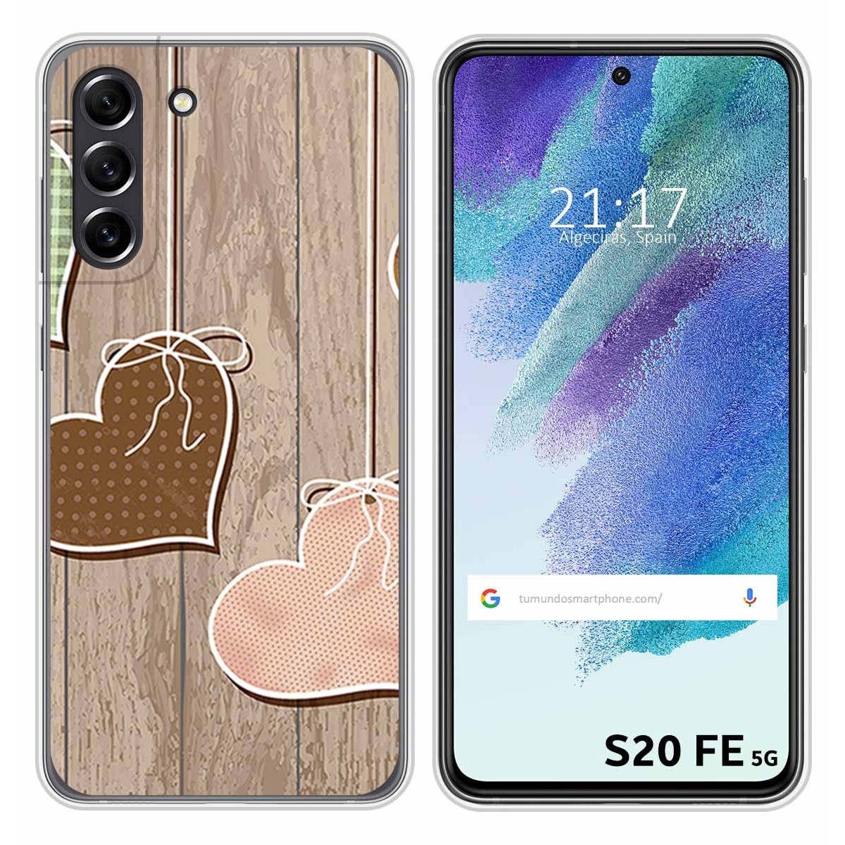 Funda Carcasa Protectora personalizada dibujo Corazones Madera de gel TPU para Samsung Galaxy S21 FE 5G.