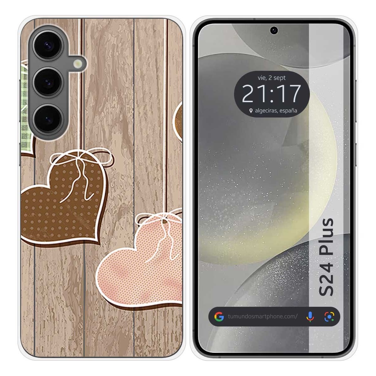 Funda Silicona para Samsung Galaxy S24+ Plus 5G diseño Corazones Madera Dibujos