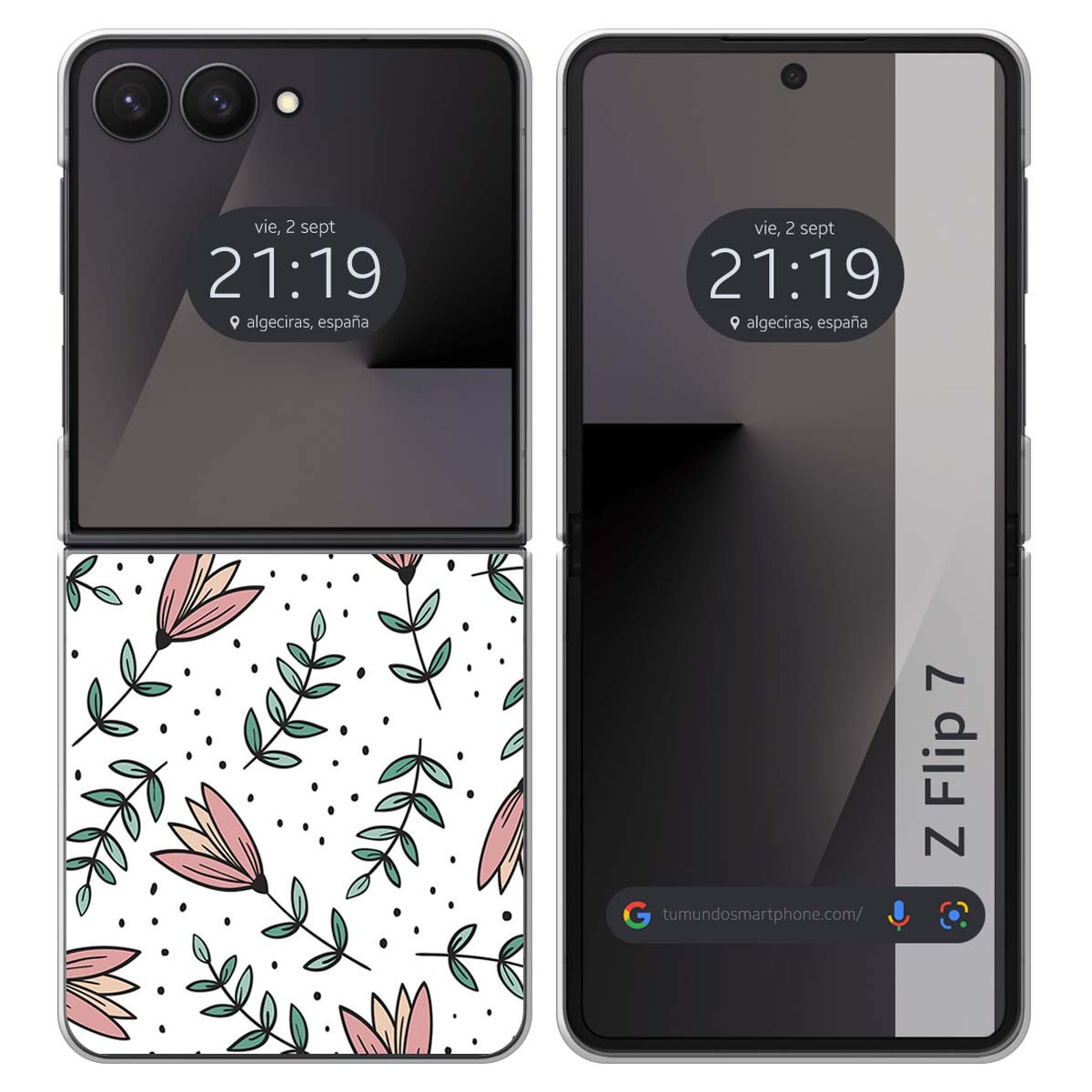 Funda Carcasa de Silicona Transparente Antigolpes personalizada dibujo Flores 01 para Samsung Galaxy Z Flip 7 5G.
