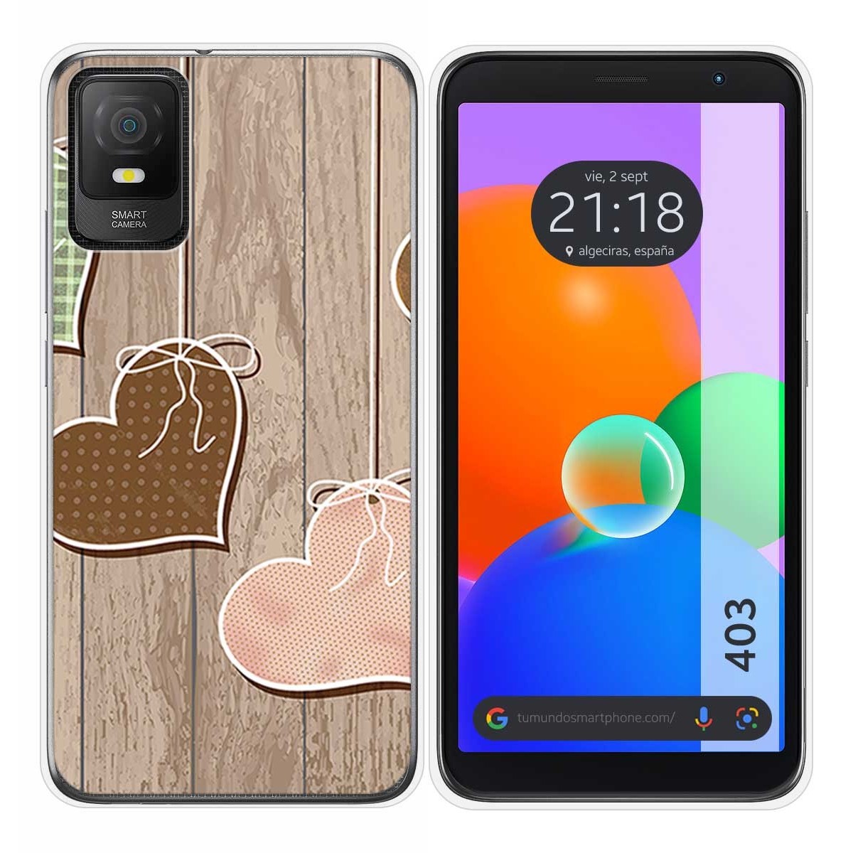 Funda Silicona para TCL 403 diseño Corazones Madera Dibujos