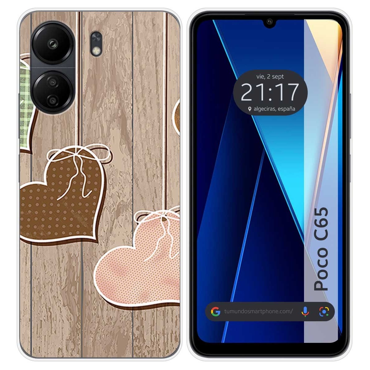 Funda Carcasa Protectora personalizada dibujo Corazones Madera de gel TPU para Xiaomi Poco C65.