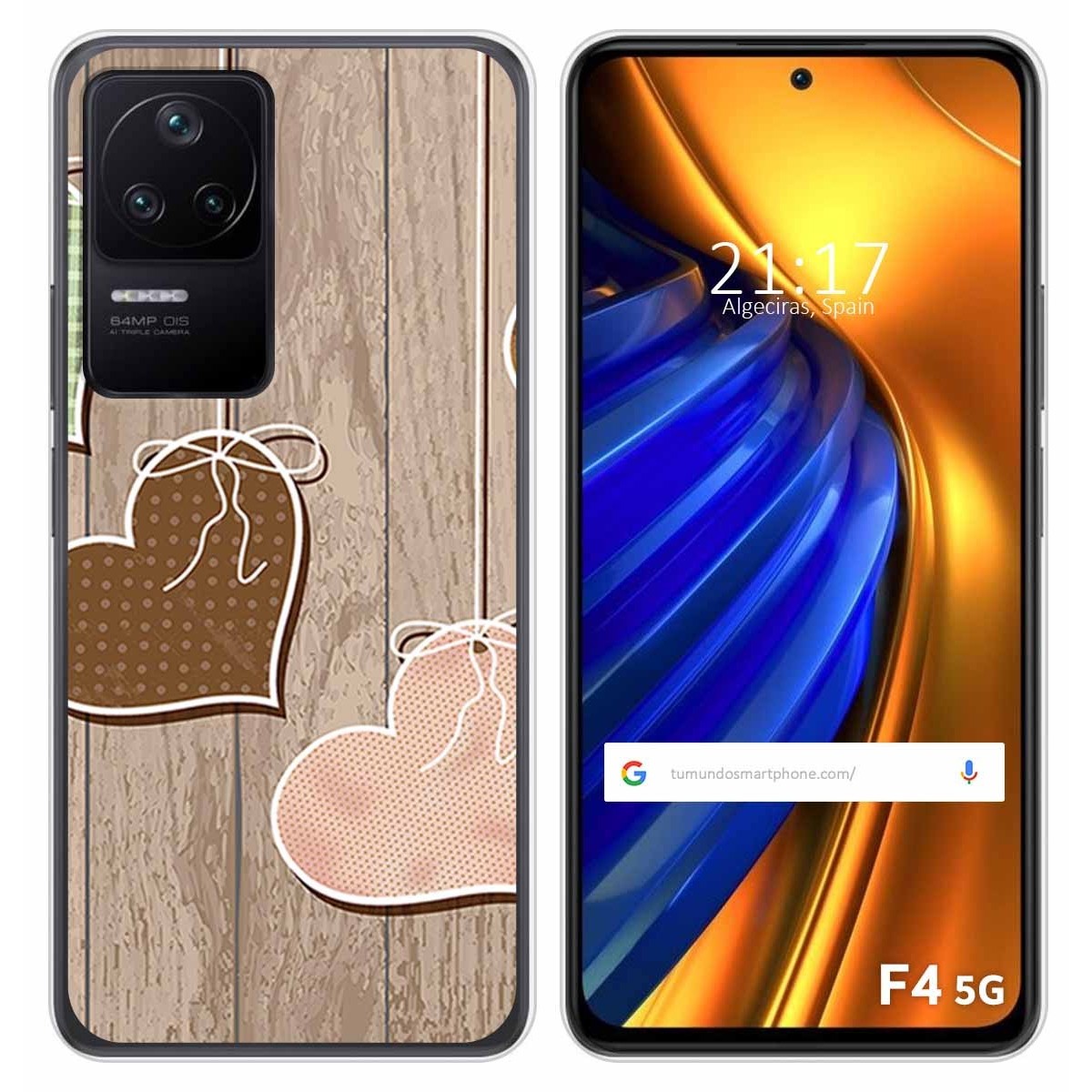 Funda Silicona para Xiaomi Poco F4 5G diseño Corazones Madera Dibujos