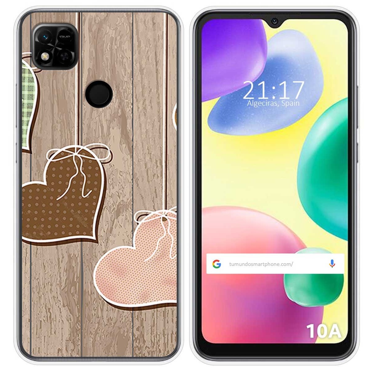 Funda Silicona compatible con Xiaomi Redmi 10A diseño Corazones Madera Dibujos